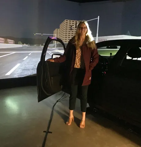 In her graduate work, Breur has developed lab and field experiments that are being used by the National Highway Traffic Safety Commission. The Oregon Department of Transportation has adopted new truck striping standards she developed and has accepted her Road Safety and Simulation conference paper for Special Issue Publication.