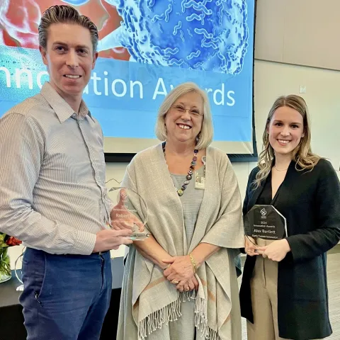 ARCS Oregon alum, Alex Bartlett, received the OHSU Innovation Award for Early Career Innovator on March 14, 2024. Alex is a third-year postdoctoral research fellow in Dr. Robert Eil’s lab, funded by the Cancer Research Institute Irvington Postdoctoral Fellowship.