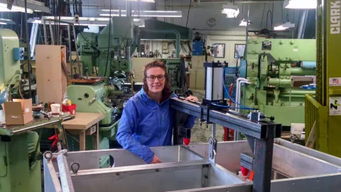 Maggie is pictured with the newly constructed Tsunami Maker.