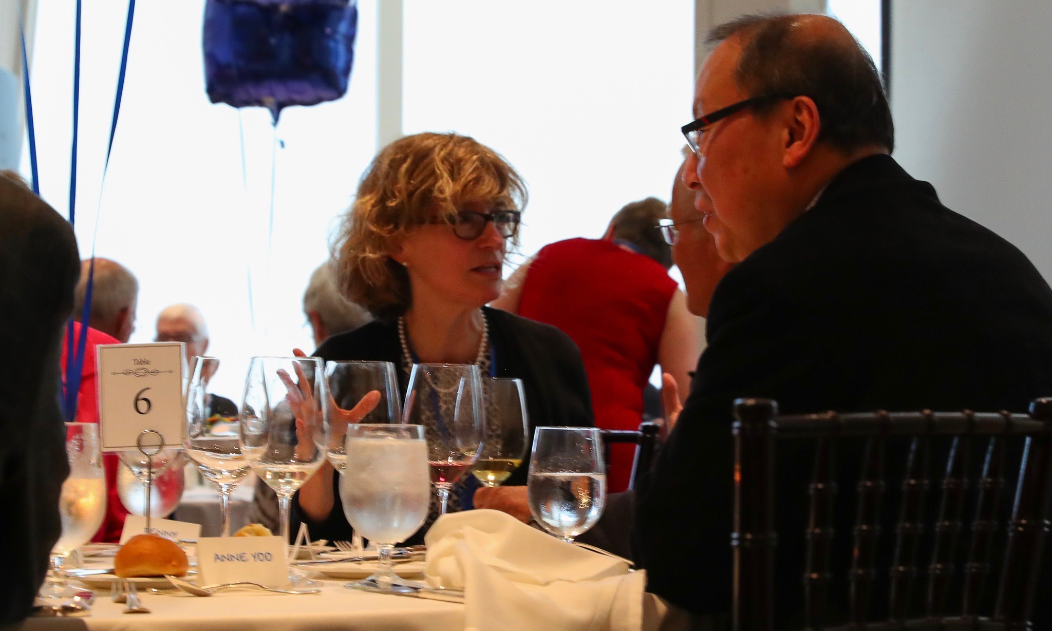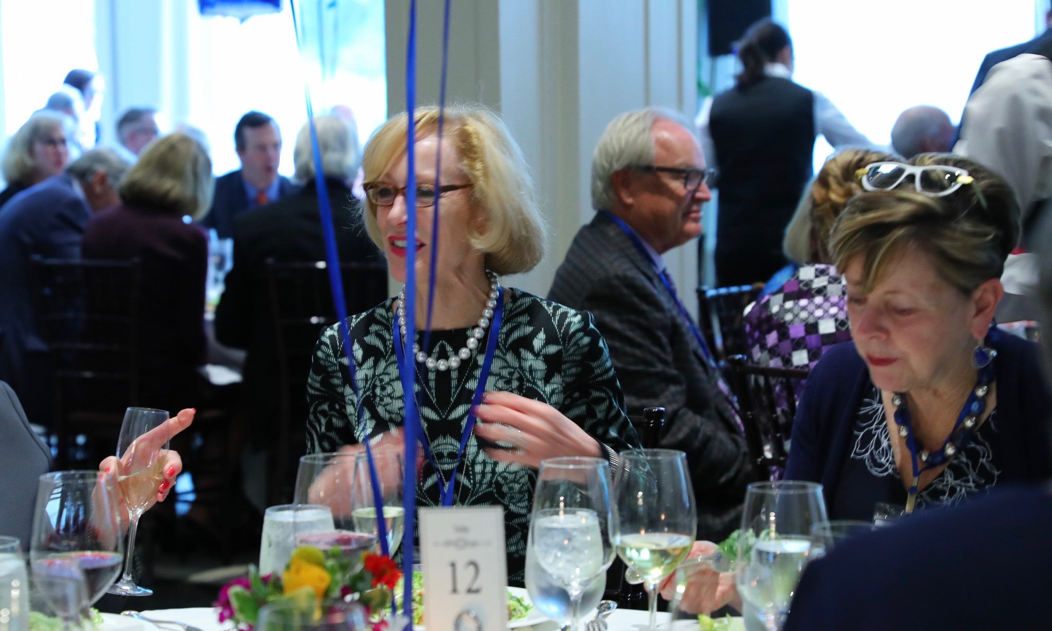 The festivities began when guests entered the room that was festooned with ARCS logoed balloons and flowers. Julie Branford and Sue McGrath welcomed the presidents from our three university partners, Dr. Danny Jacobs (OHSU), Dr. Ed Ray (OSU) and Mike Schill (UO), along with ARCS members and spouses. The most recent ARCS video kicked-off the celebration. Toasts and short speeches followed. Founding Member Sharon Hewitt gave the first toast remembering the early days of ARCS Portland as it was then called. Past presidents and board members recognized the contributions of our leadership, committee members, and all members as donors. Stoel Rives law firm, represented by ARCS member and managing partner Penny Serrurier, was toasted for their continued support of the Scholar Awards Luncheon since 2005. They have also been instrumental in providing our Chapter with pro bono counsel.