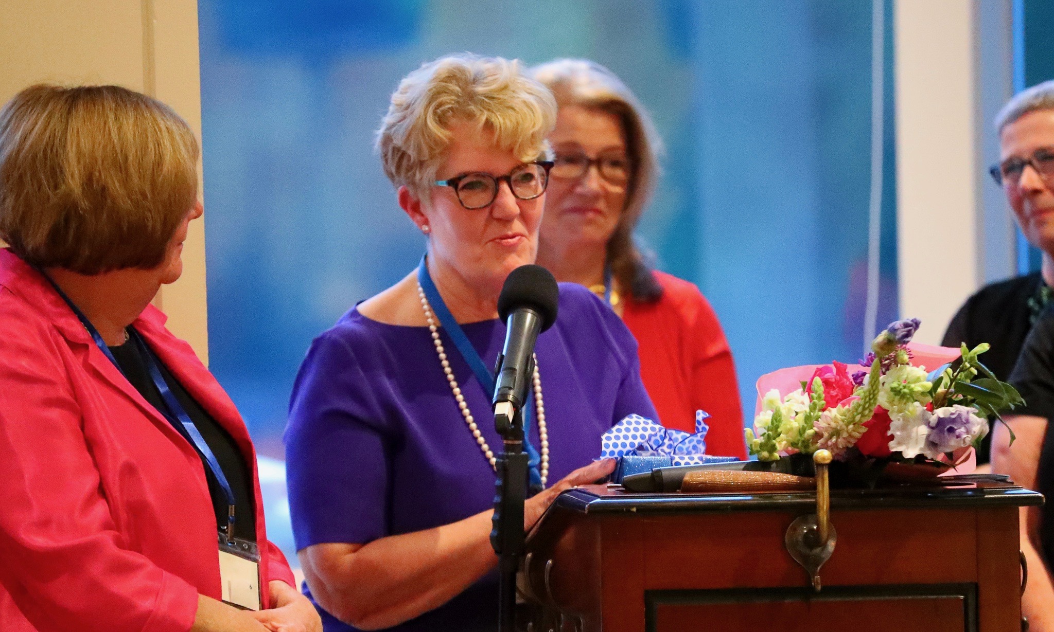 Anne Jarvis, co-recipient with Kate Joseph of the 2018 ARCS Light Award, introduced the 2019 ARCS Light, Joan Foley. Joan accepted the award and flowers, with words of gratitude to the membership.