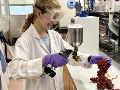 The Three Minute Thesis competition celebrates the exciting research conducted by Doctor of Philosophy students. Developed by The University of Queensland, 3MT® cultivates students' academic, presentation and research communication skills. Sarah's presentation was titled "Wine and Wildfires: Shielding Wine Grapes from Wildfire Smoke."